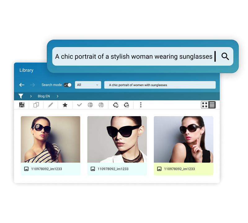 Semantic Search automatically surfaces similar or redundant assets, reducing clutter and reinforcing brand consistency.
